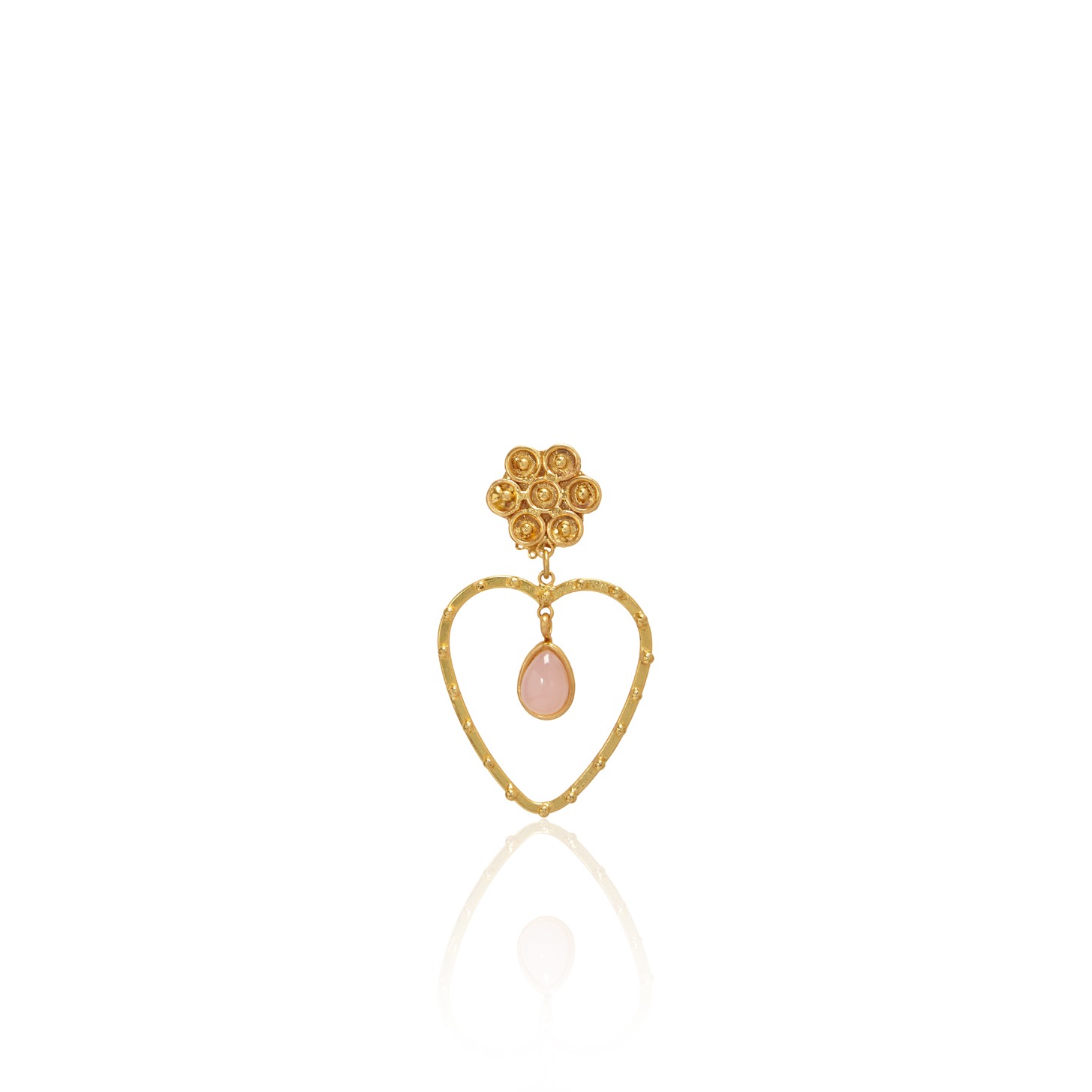 Cœur Earrings, Gold plated brass, Pink Quartz
