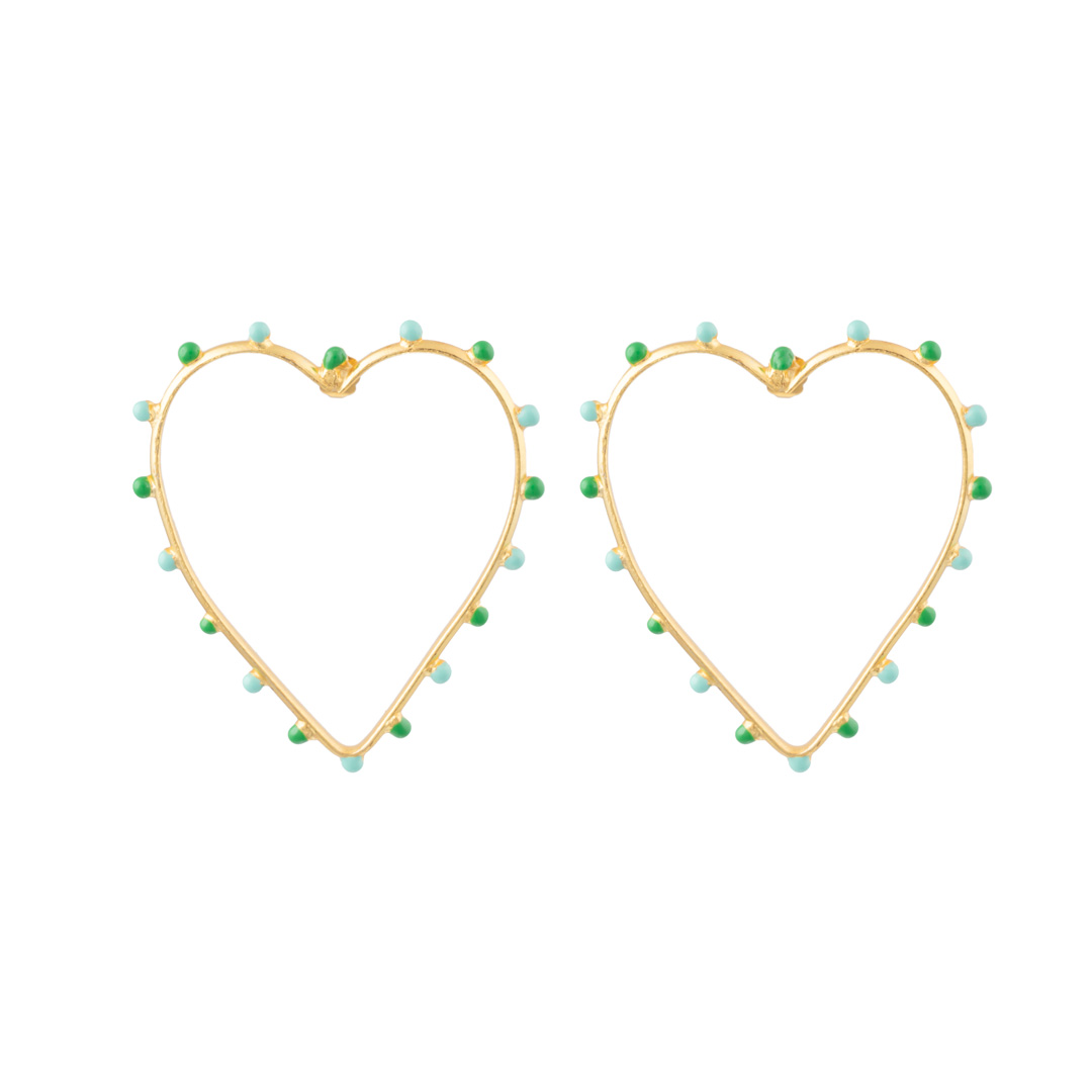 Boucles d’oreille “Dots” – Heart Gold – Enamel Vert/Turquoise