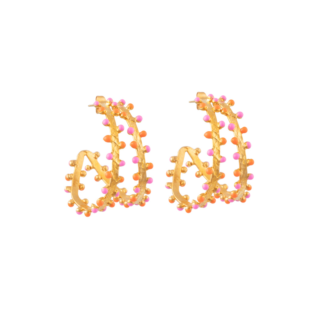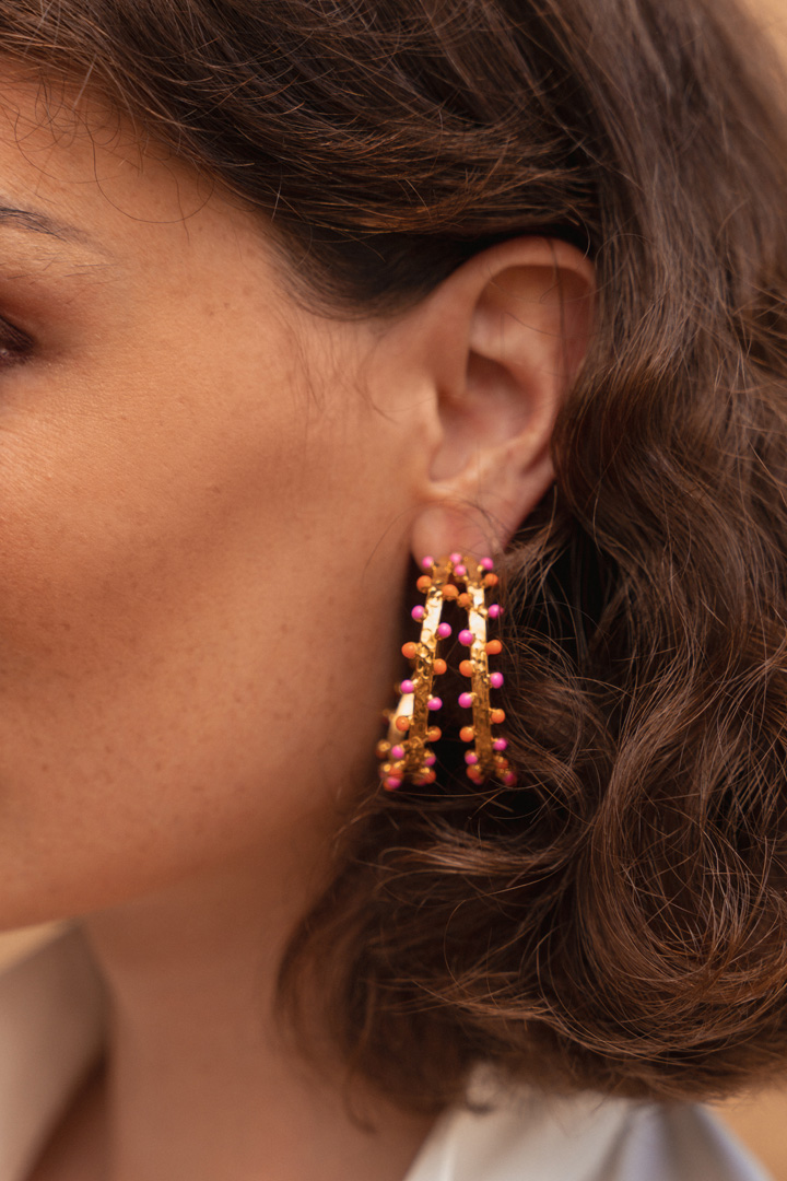 Boucles d’oreille “Gipsy” – Gold – Rose/Orange Enamel