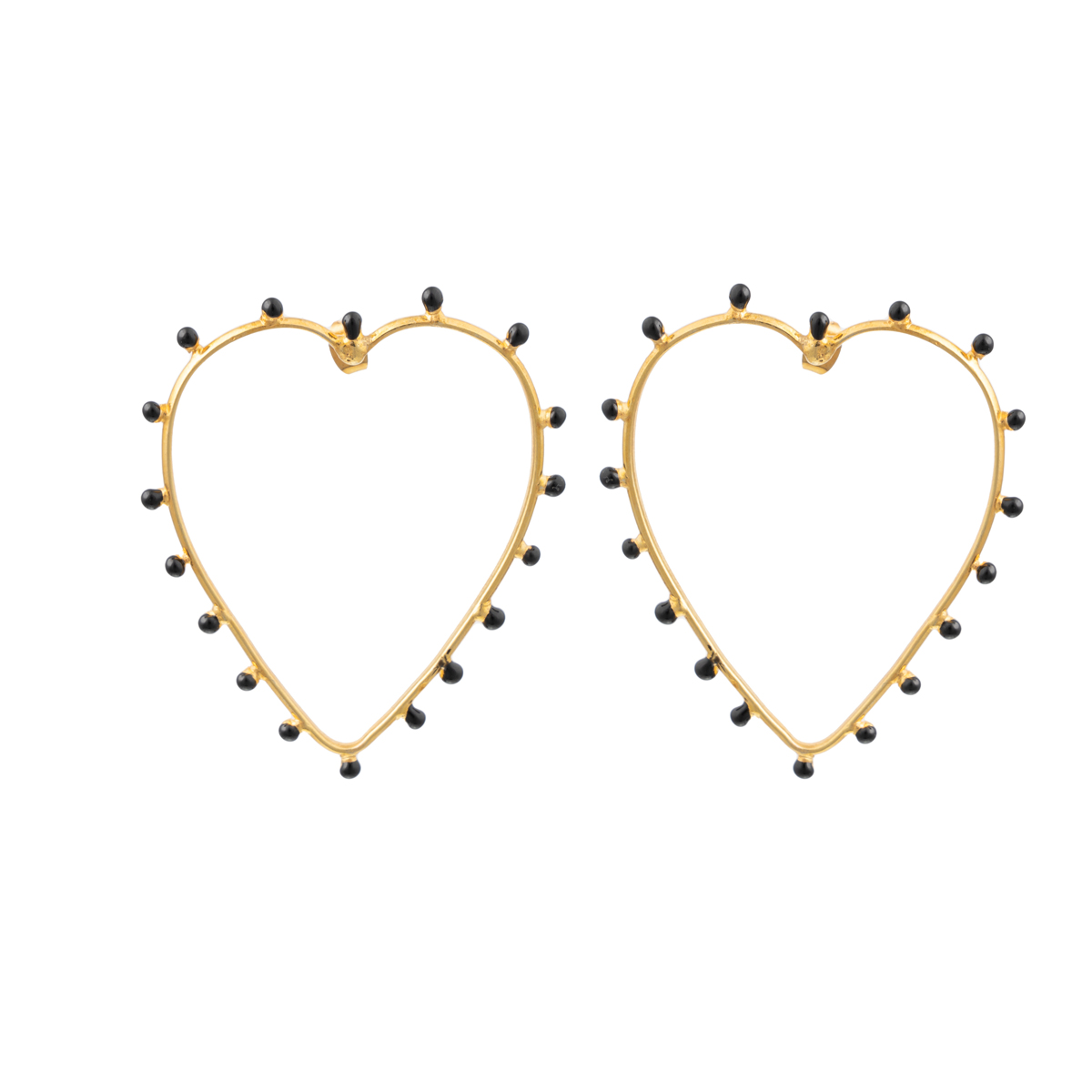 Boucles d’oreille/ Earrings: “Dots” – Pierre/Stone: Heart Gold – Black Enamel