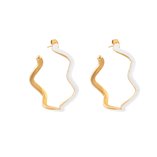 Boucles d’oreille/ Earrings: “Flow” – Pierre/Stone: Gold – White Enamel