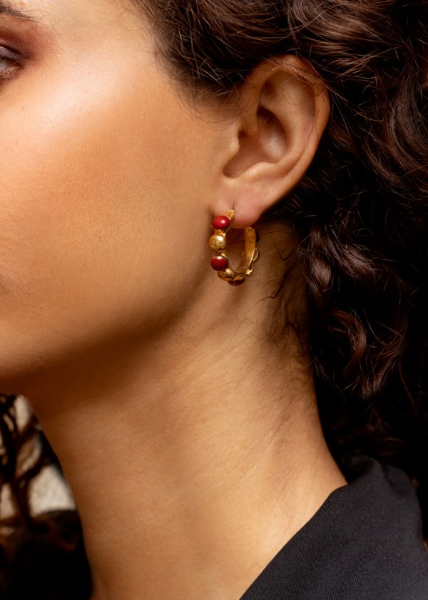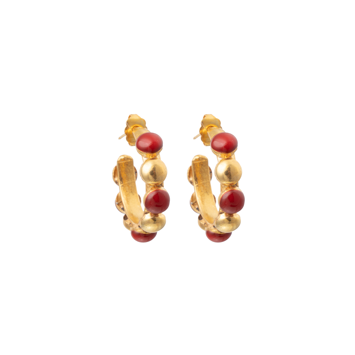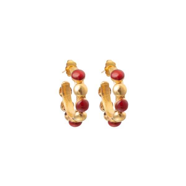 Boucles d’oreille/ Earrings: “Mini Créole” – Gold – Red Enamel