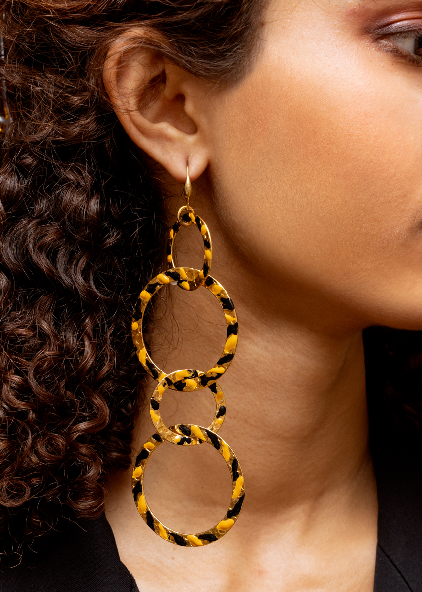 Boucles d’oreille/ Earrings: “Saturn” – Gold – Feline Enamel
