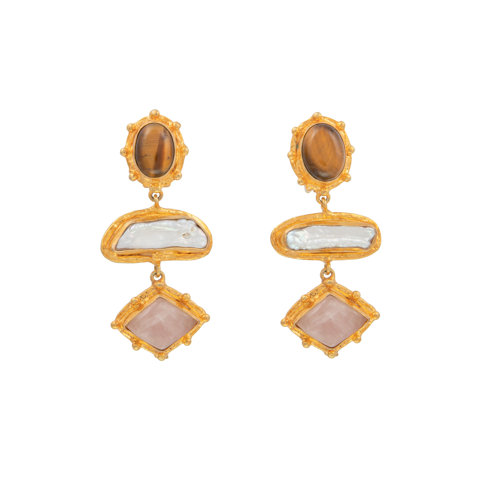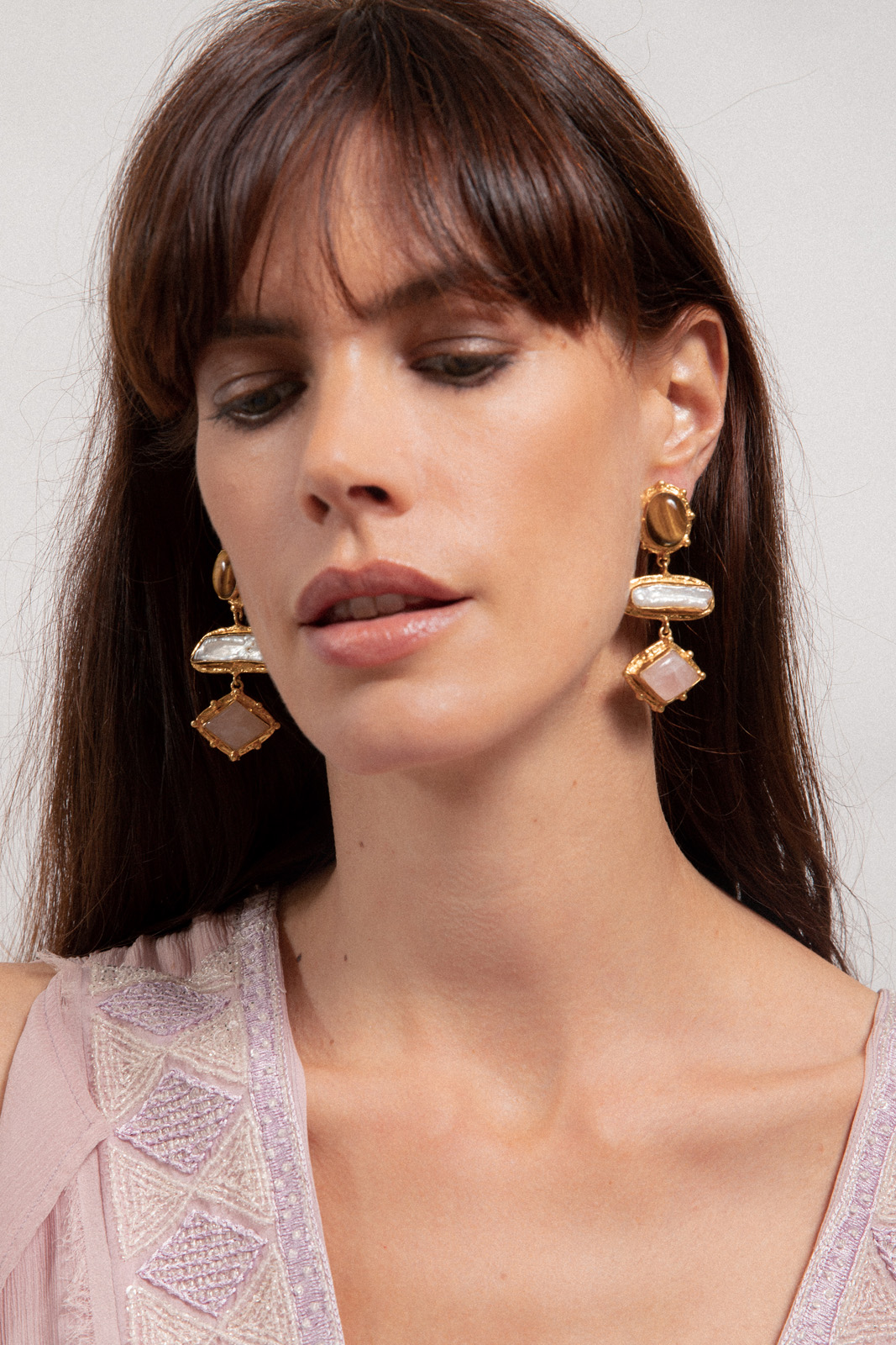 Boucles d’oreille/ Earrings: “Theodora” – Pierre/Stone: Tiger Eye / Pearl/ Pink Quartz