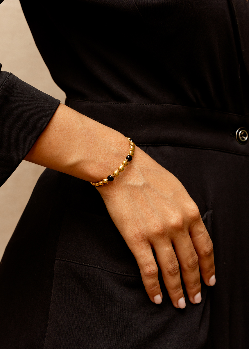 Bracelet/Bracelet : “Dots” – Gold – Black Enamel