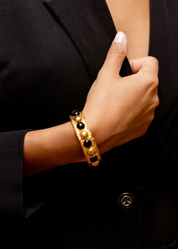 Bracelet/Bracelet : “Bracelet Tribal” – Gold – Black Enamel