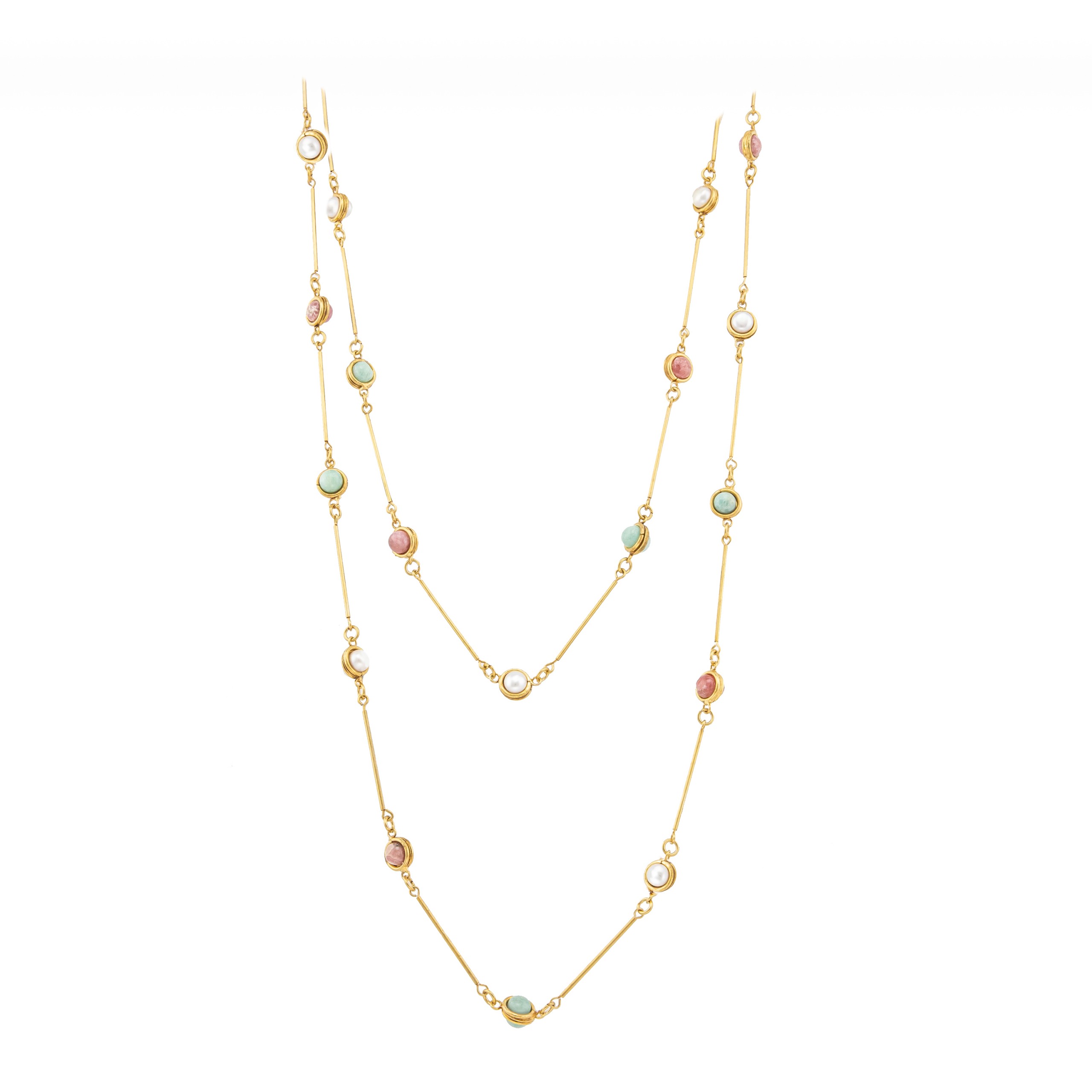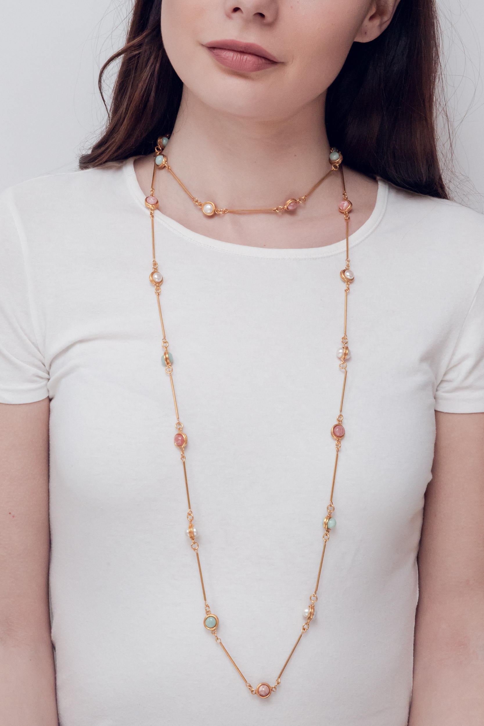 Golden brass – Amazonite, Pearl, Rhodochrosite