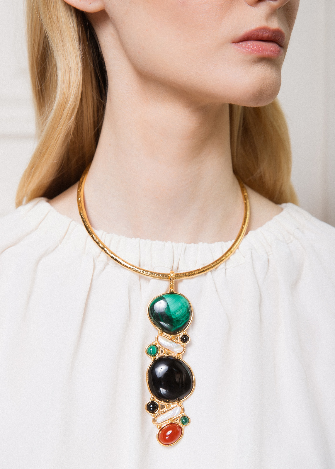 Golden brass – Malachite, Pearl, Black Onyx, Cornaline
