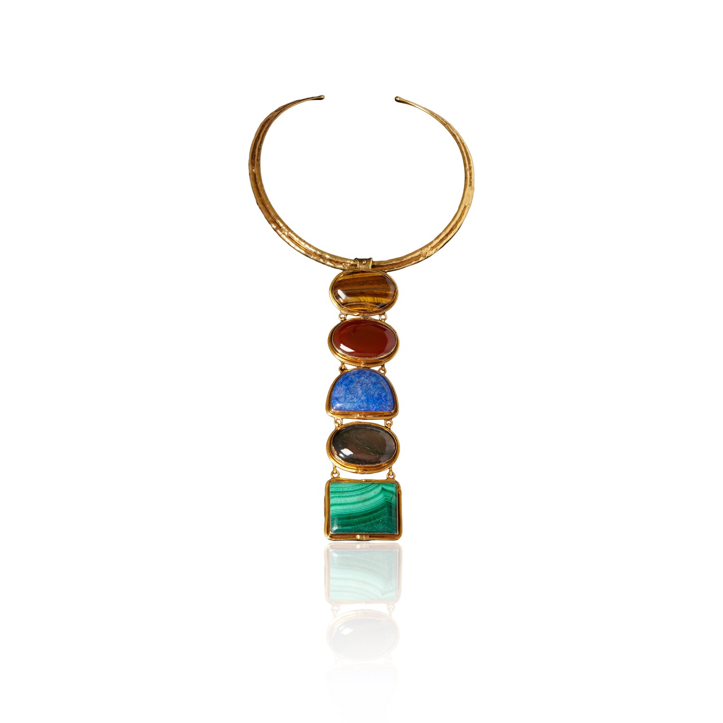 Collier/Pendent: “Torque” – Pierres/Stones: Cornaline/ Malachite/ Tiger Eye/Labradorite/ Black Onyx
