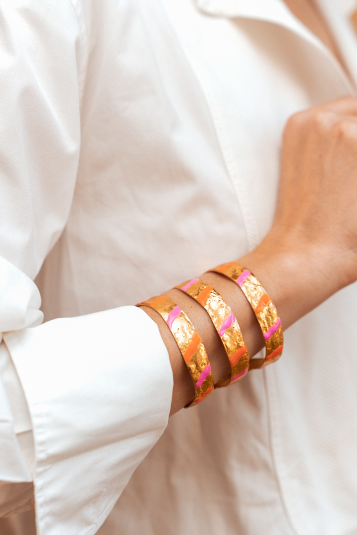 Manchette “Bianca” – Gold – Rose/Orange Enamel