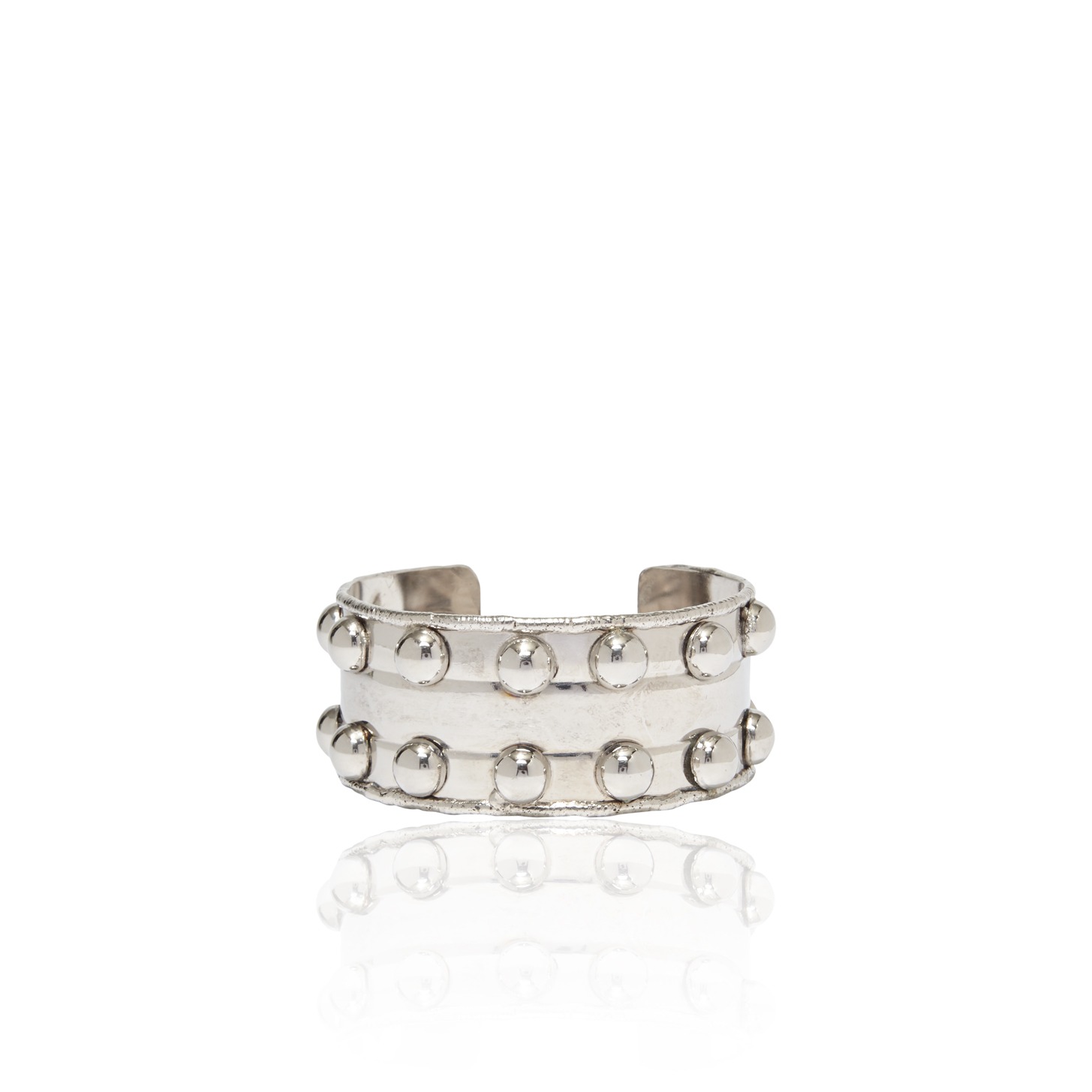 The Stone Massai dots cuff is soon to become the new best seller of Sylvia Toledano jewels collection. Chic, simple but still noticeable, he is the new favorite of the press, the fashionistas of the world. So easy to wear everyday, from day to night, your everyday metallic touch. Start your own collection. The open-ended design of this piece makes it easy to slip on and off. This cuff is crafted in Jaipur and made of silver brass.