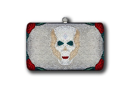 Minaudière en Métal pavée à la main de Cristaux Swarovski. Intérieur or ou argent. Chaîne ammovible. Stylo Pavé Assorti. L’ensemble est présenté dans une boîte écrin contenant une housse de protection.