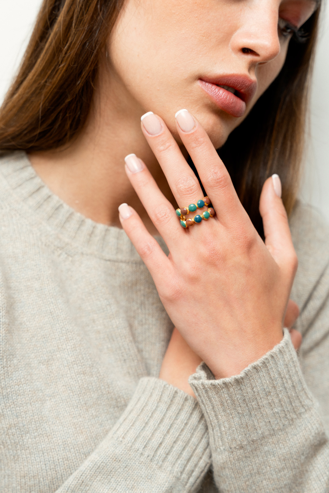 Bague/Ring: « Dots Double » – Pierre/Stone: Gold – Green/Blue/Brown