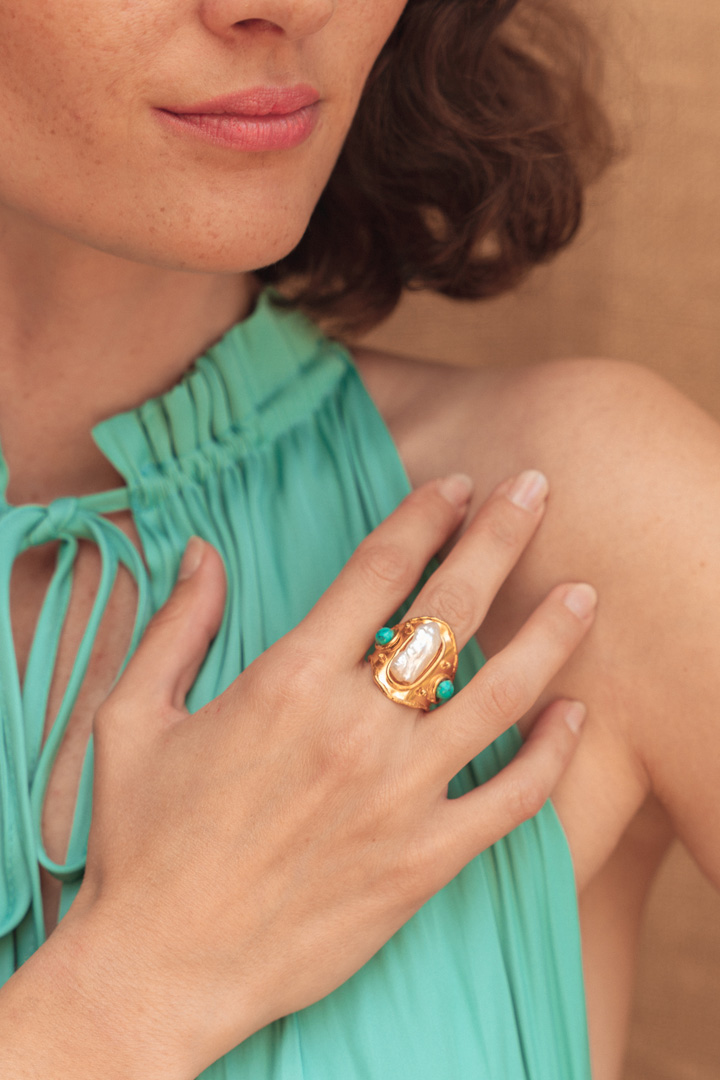Bague/Ring: « Mojave » – Pierre/Stone: Pearl/Turquoise