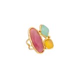 Bague « Trio » – Pink Jade/ Larimar/ Yellow Onyx