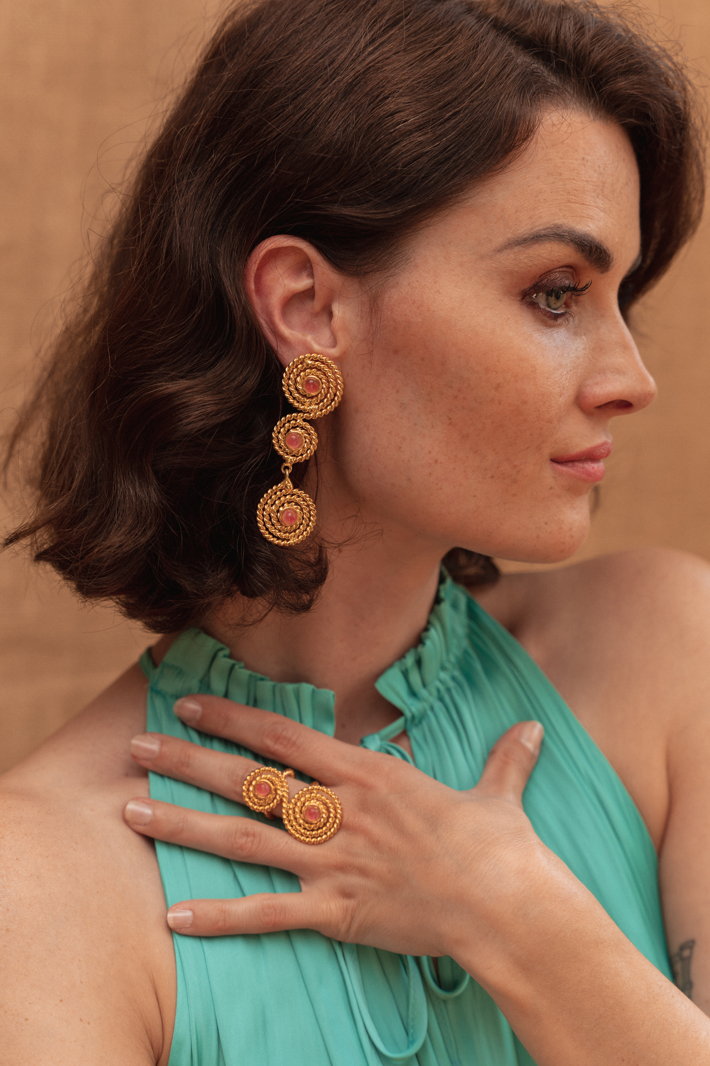 Boucles d’oreille « Spirale XXL » – Pink Jade