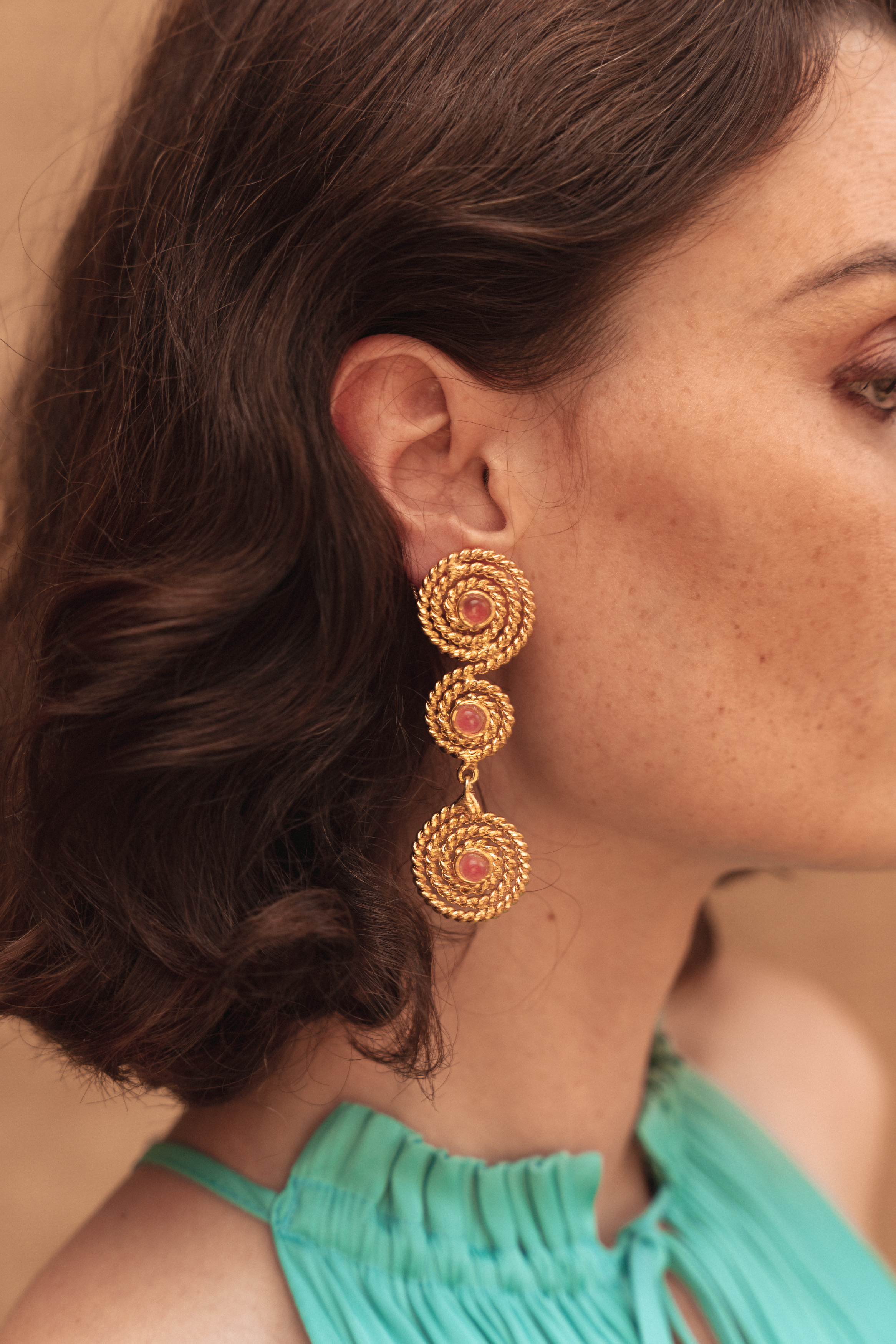 Boucles d’oreille/ Earrings: « Spirale XXL » – Pink Jade