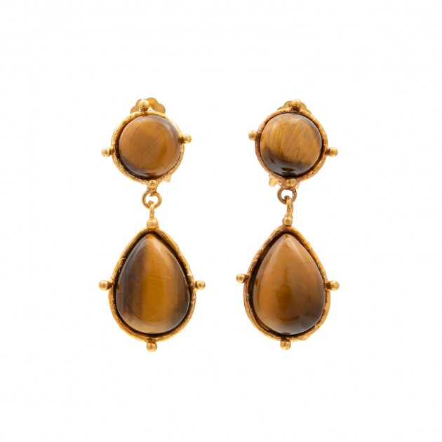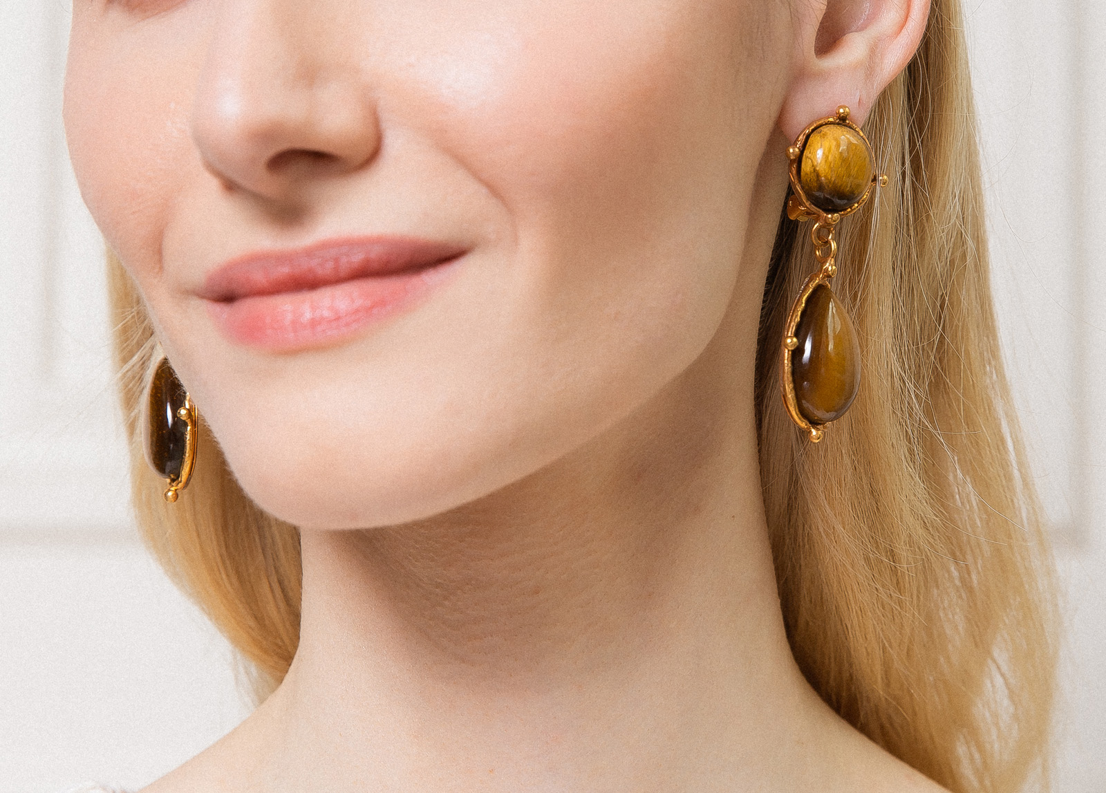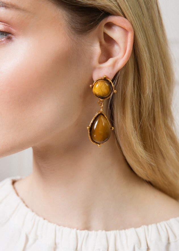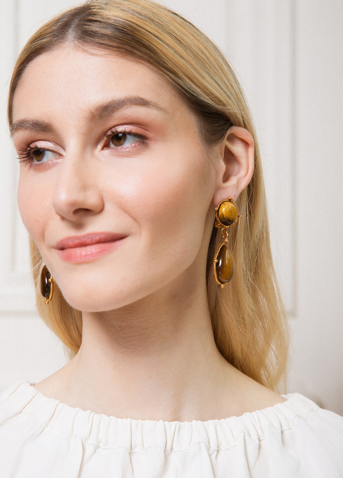 Boucles d’oreille/ Earrings: « 2 pierres dots » – Pierre/Stone: Tiger Eye