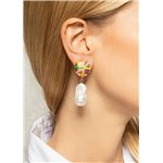 Boucles d’oreille/ Earrings: « Artsy Baroque » – Gold – Multi Enamel