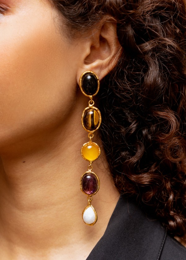 Boucles d’oreilles/Earring: » Cascade 5 » – Pierres/Stones : Feline Mix