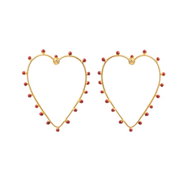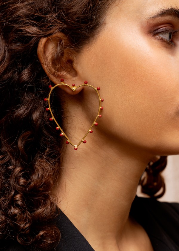 Boucles d’oreille/ Earrings: « Dots » – Pierre/Stone: Heart Gold – Red Enamel