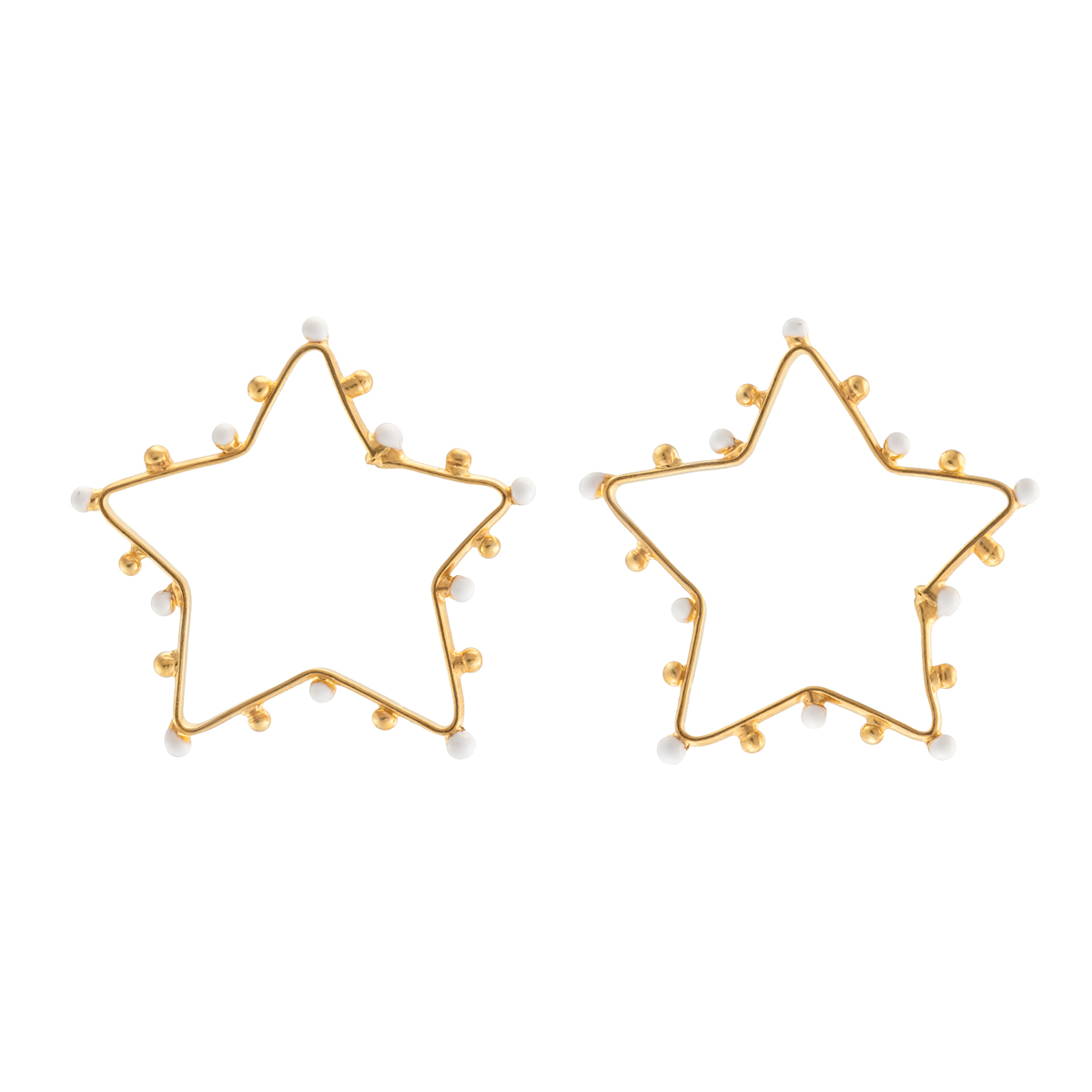 Boucles d’oreille/ Earrings: « Dots » – Pierre/Stone: Etoile Gold – Enamel White