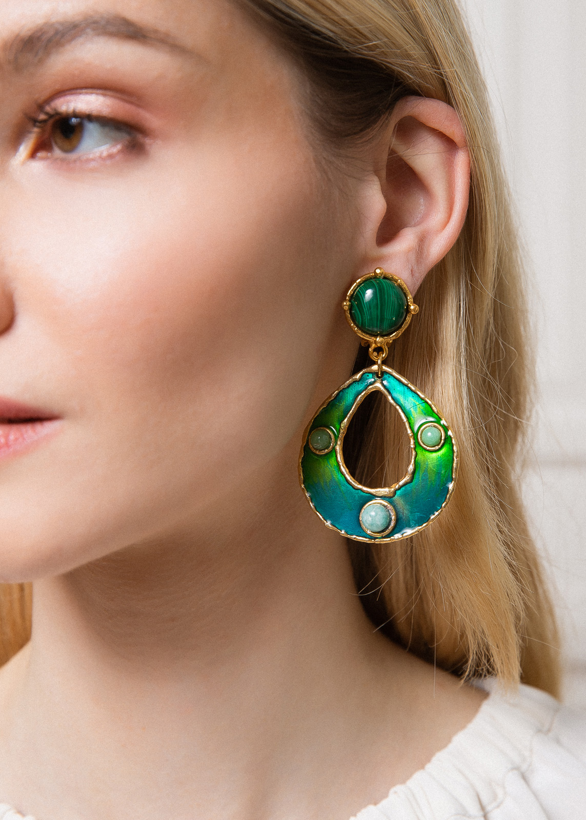 Boucles d’oreille/ Earrings: « Thalita » – Pierre/Stone: Malachite/ Amazonite