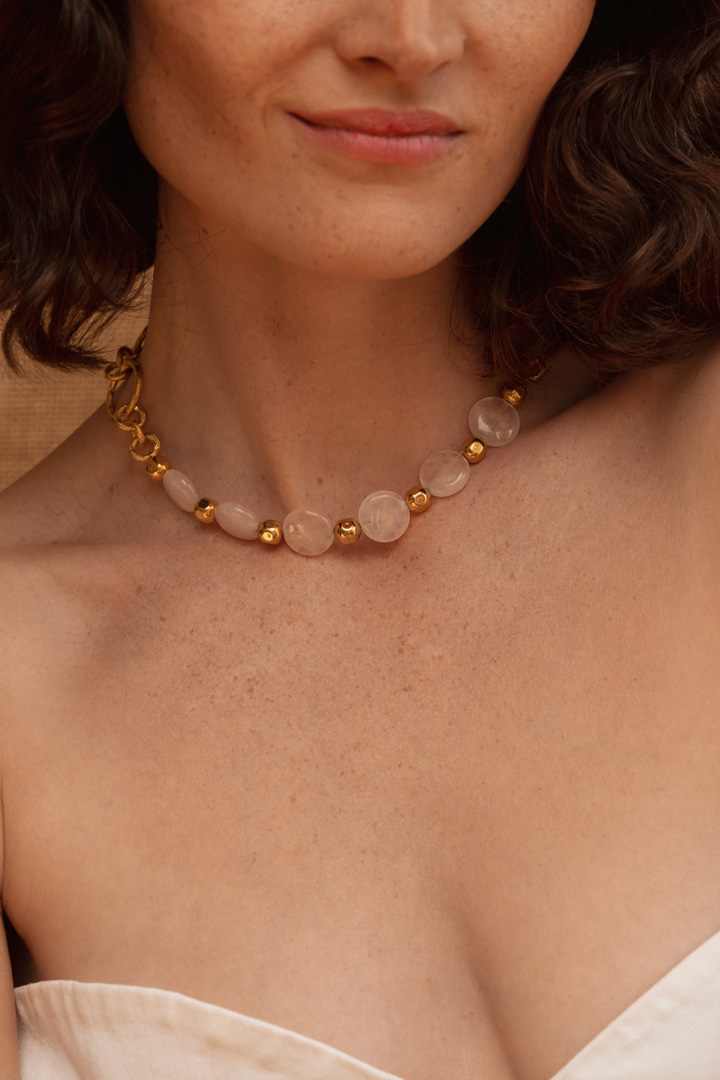Collier/Necklace: « Round&Chain » – Pink Quartz