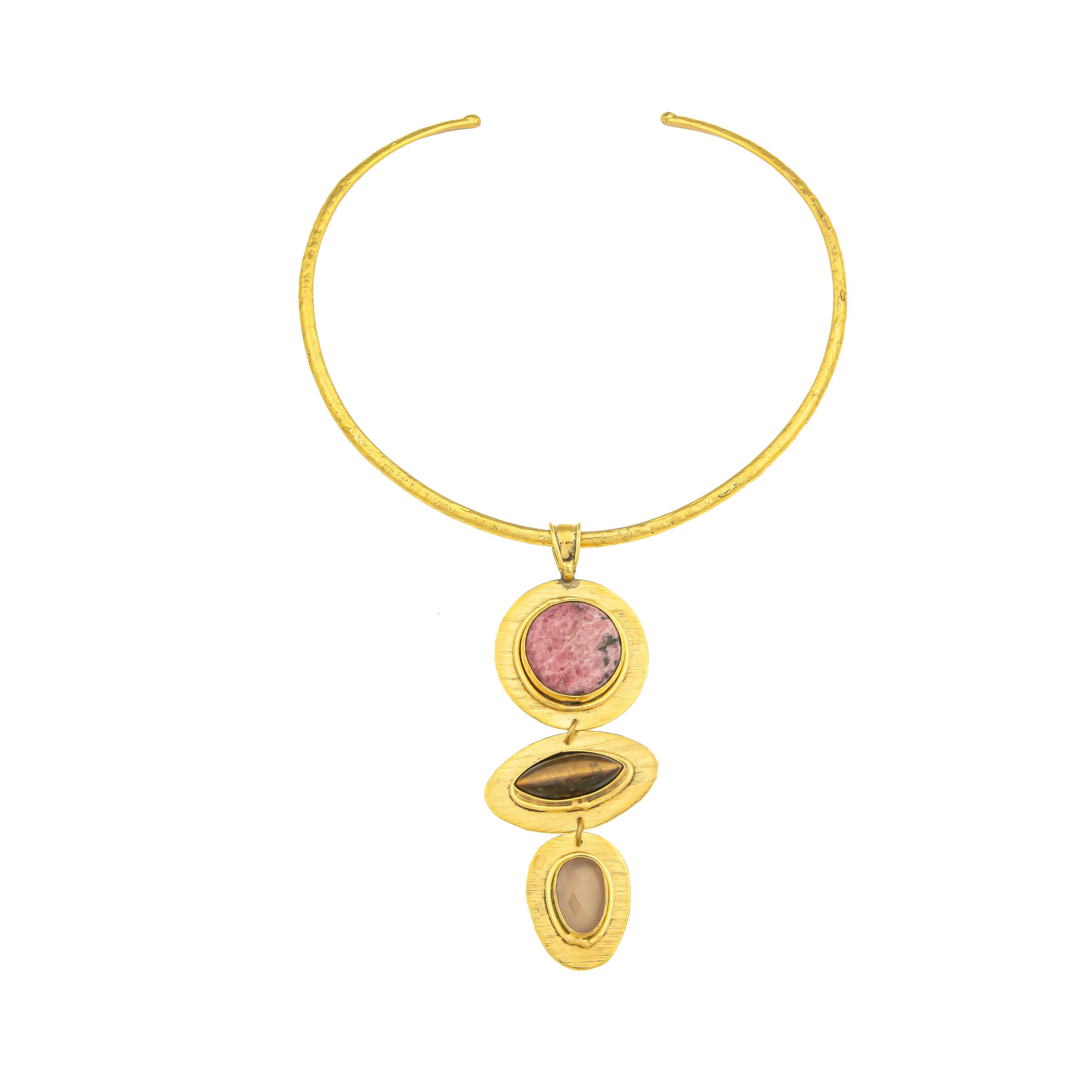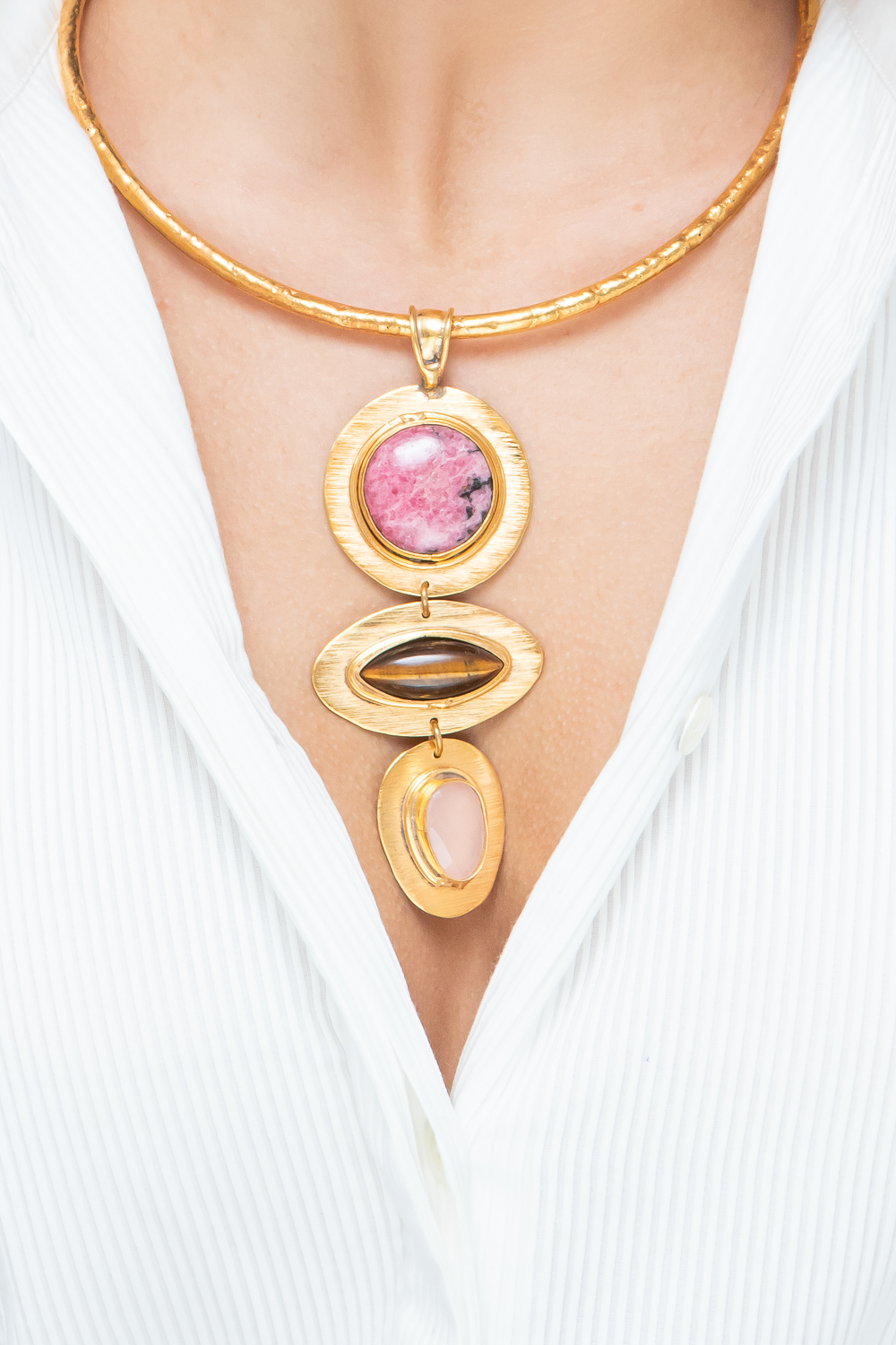 Collier/Pendant : « Theodora » – Pierre/Stone: Rhodonite/ Tiger Eye/ Quartz