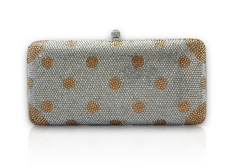 Minaudière en Métal pavée à la main de Cristaux Swarovski. Intérieur or ou argent. Chaîne ammovible. Stylo Pavé Assorti. L’ensemble est présenté dans une boîte écrin contenant une housse de protection.