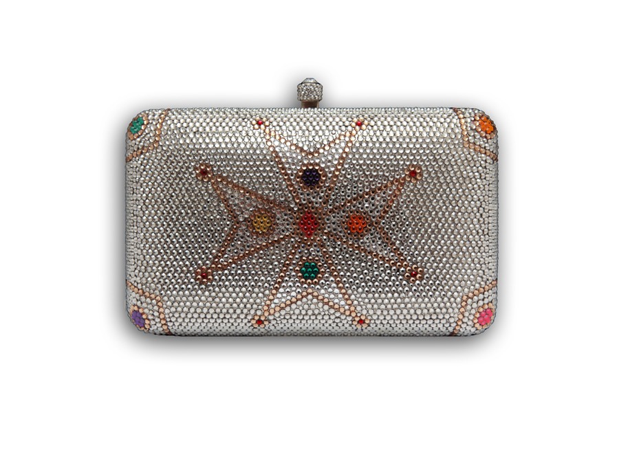 Minaudière en Métal pavée à la main de Cristaux Swarovski. Intérieur or ou argent. Chaîne ammovible. Stylo Pavé Assorti. L’ensemble est présenté dans une boîte écrin contenant une housse de protection.