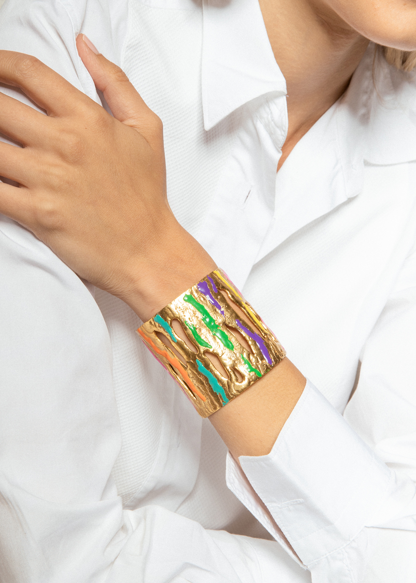 Manchette/Cuff: « Artsy » -Pierre/Stone: Gold – Multi Enamel