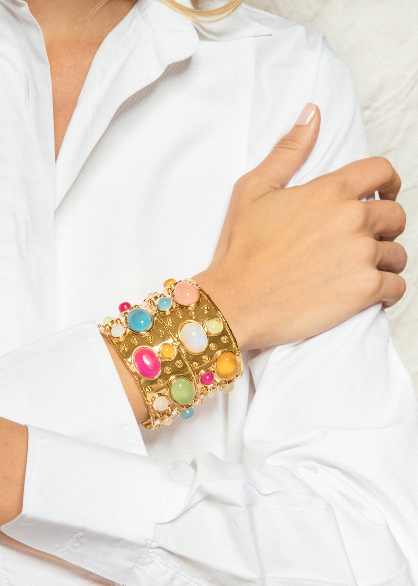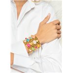 Manchette/Cuff : « Byzance » – Pierres/Stones : Died Ruby/ Yellow Onyx/ Green Pale onyx