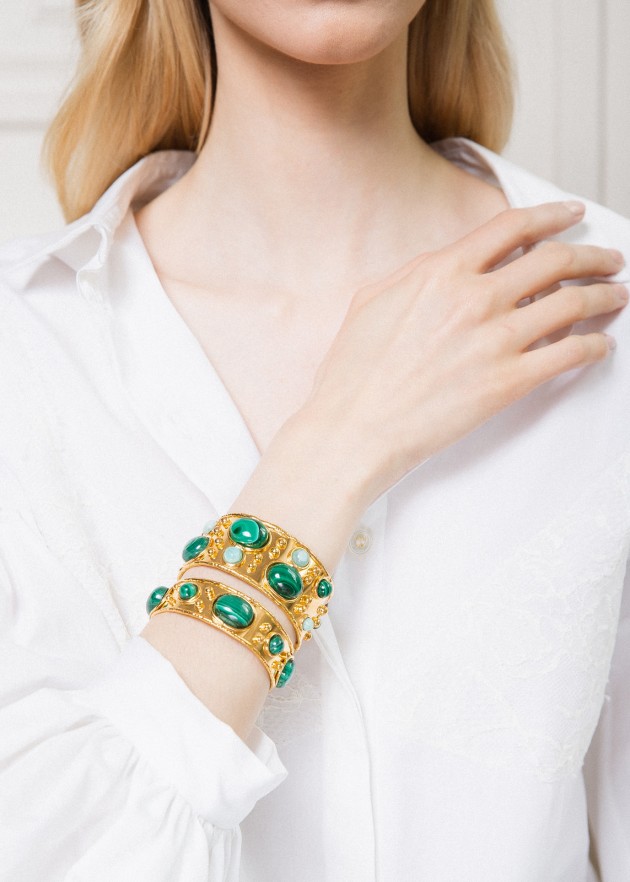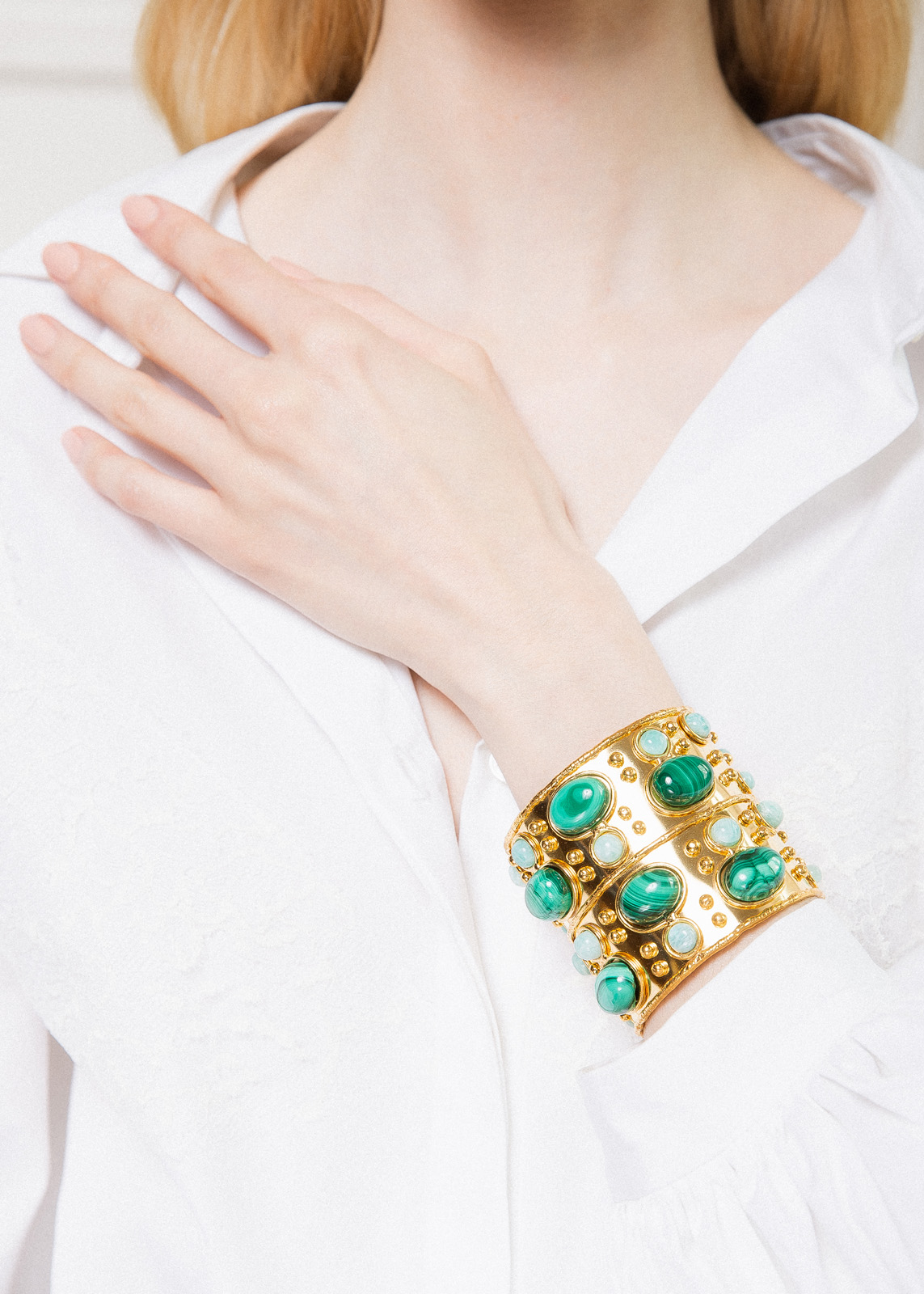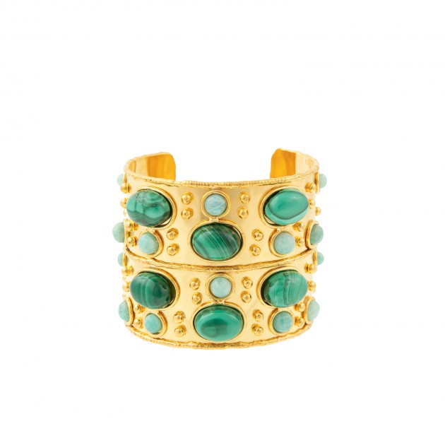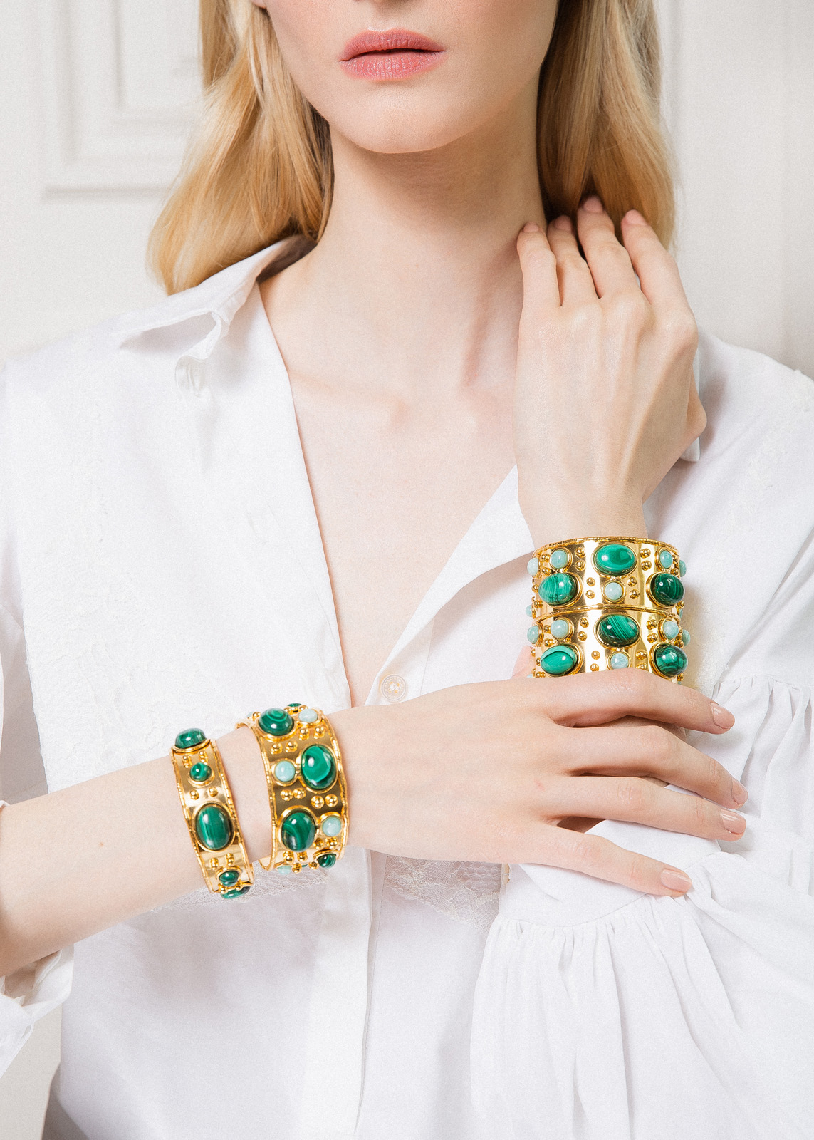 Manchette/Cuff : « Byzance » – Pierres/Stones : Malachite/ Amazonite