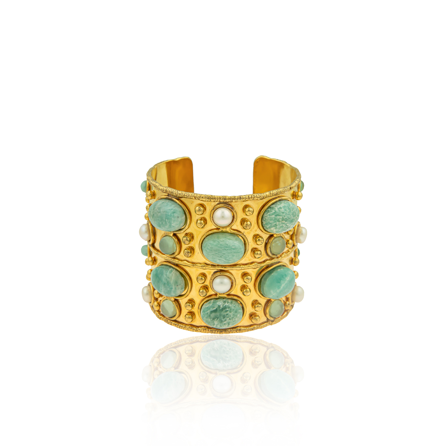 Manchette/Cuff : « Byzance » – Pierres/Stones : Amazonite/Pearl/Green pale onyx