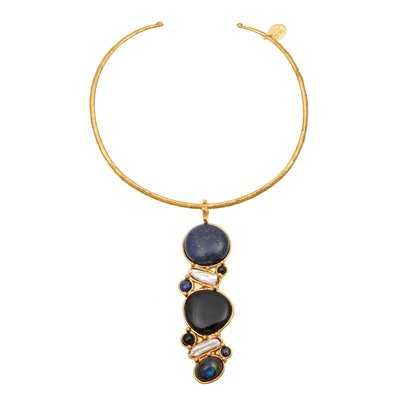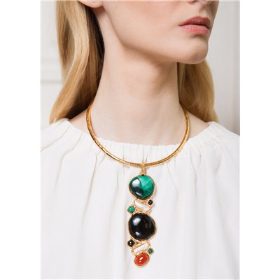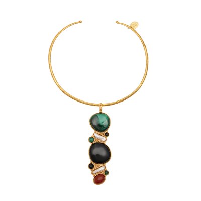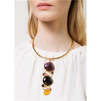 Laiton doré à l’or fin -Amethyste, Perle, Onyx Noir, Onyx Jaune