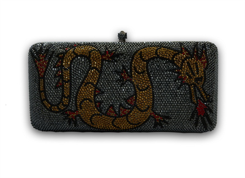 Minaudière en Métal pavée à la main de Cristaux Swarovski. Intérieur or ou argent. Chaîne ammovible. Stylo Pavé Assorti. L’ensemble est présenté dans une boîte écrin contenant une housse de protection.