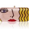Minaudière en Métal pavée à la main de Cristaux Swarovski. Intérieur or ou argent. Chaîne ammovible. Stylo Pavé Assorti. L’ensemble est présenté dans une boîte écrin contenant une housse de protection.